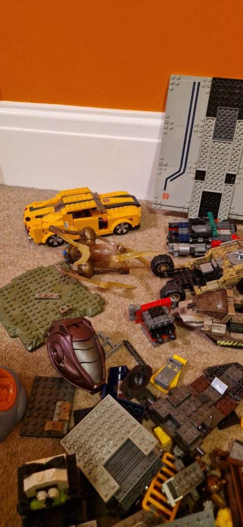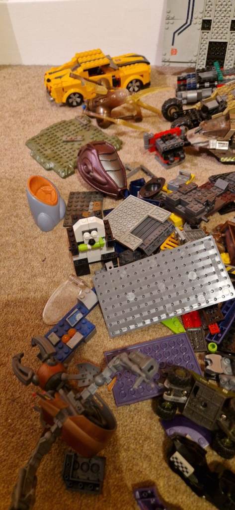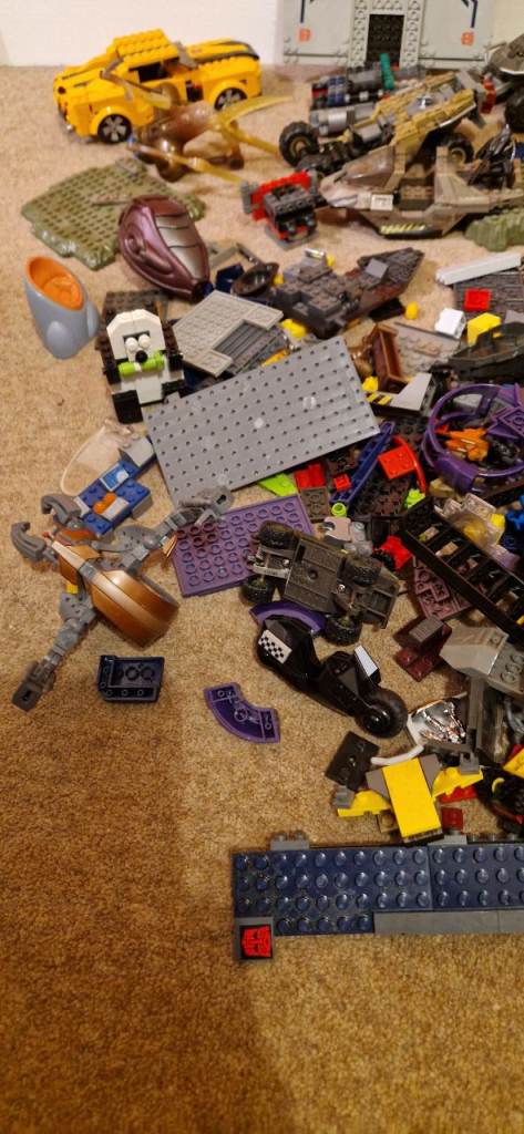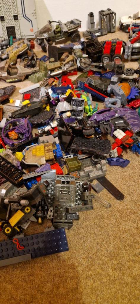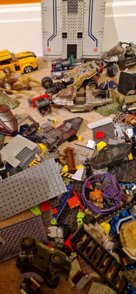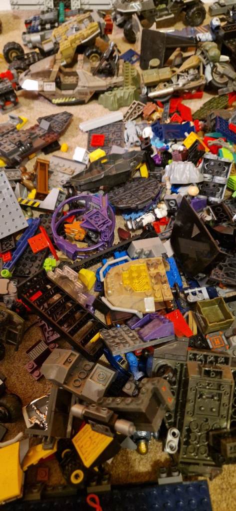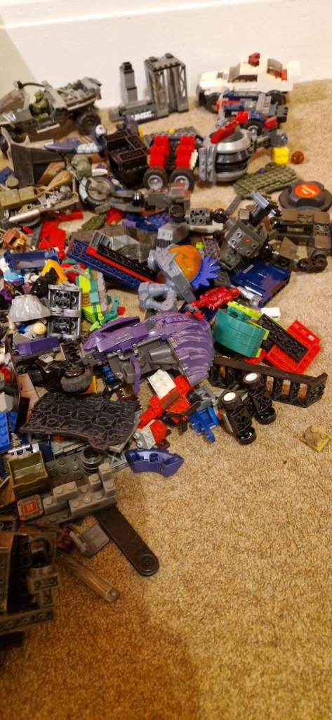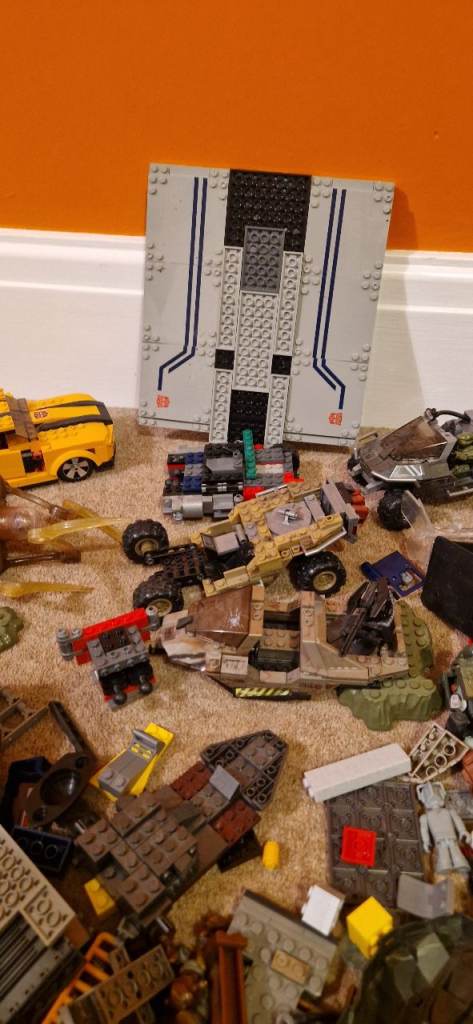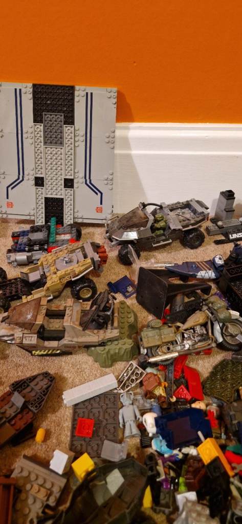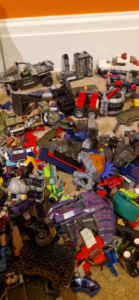 Quite a number of bricks including part built vehicles and minifigures.