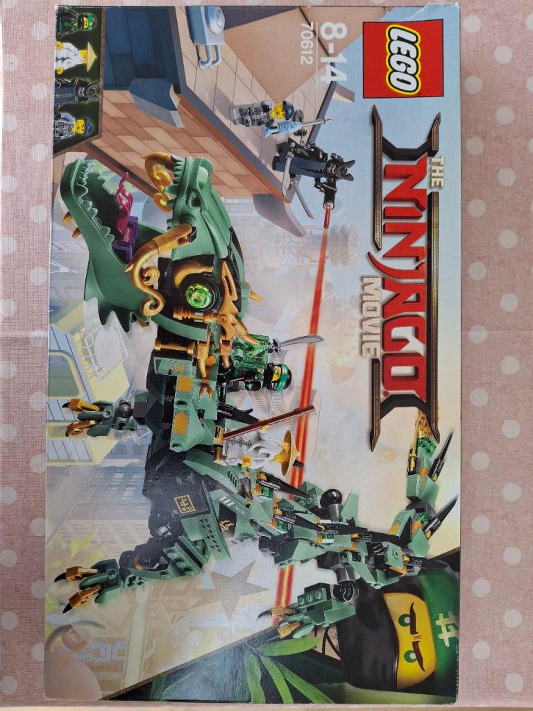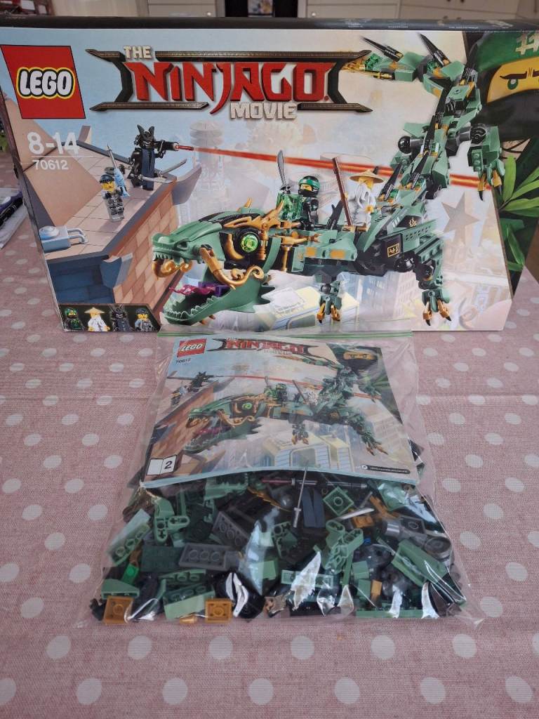 LEGO 70612 Ninjago Movie Green Ninja Mech Dragon. 60 cm long Green Dragon, minifigures Lloyd, Master Wu, Lord Garmadon and Charlie. Used good condition, box, instructions, broken down, Smoke free home. Collection in Southampton or chandlersford, postage available via post office app and PayPal payment at buyers cost.