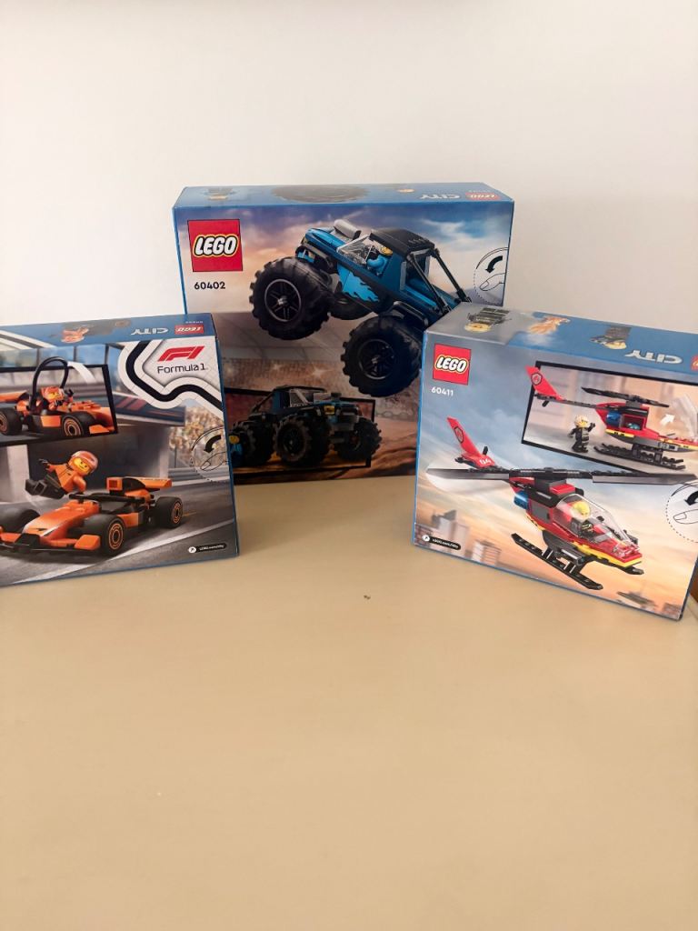 Lego City Bundle x3 boxes NEW & unopened - Monster truck, F1 race car, Fire helicopter