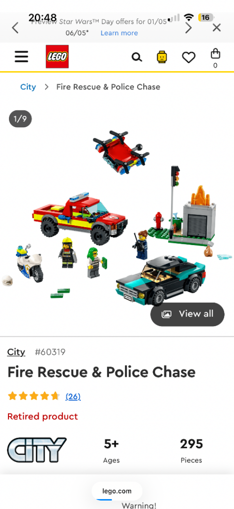 Selling Lego City Fire Rescue & Police Chase 60319.