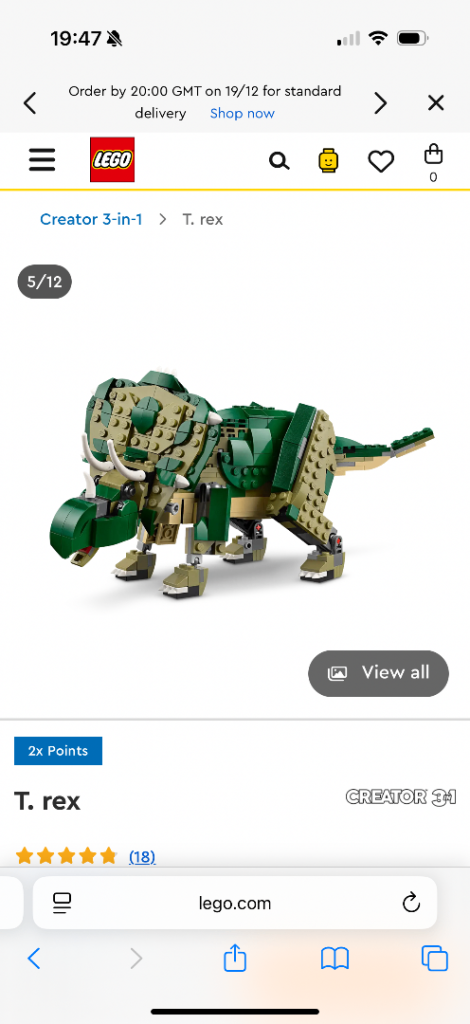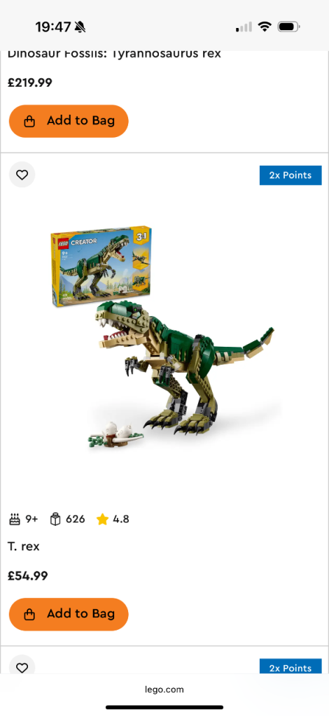 Lego creator dinosaur made once and dismantled and bagged comes with instructions rrp £55
