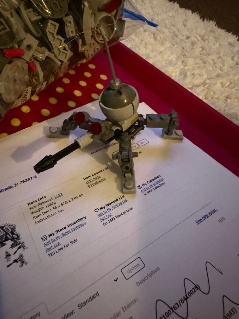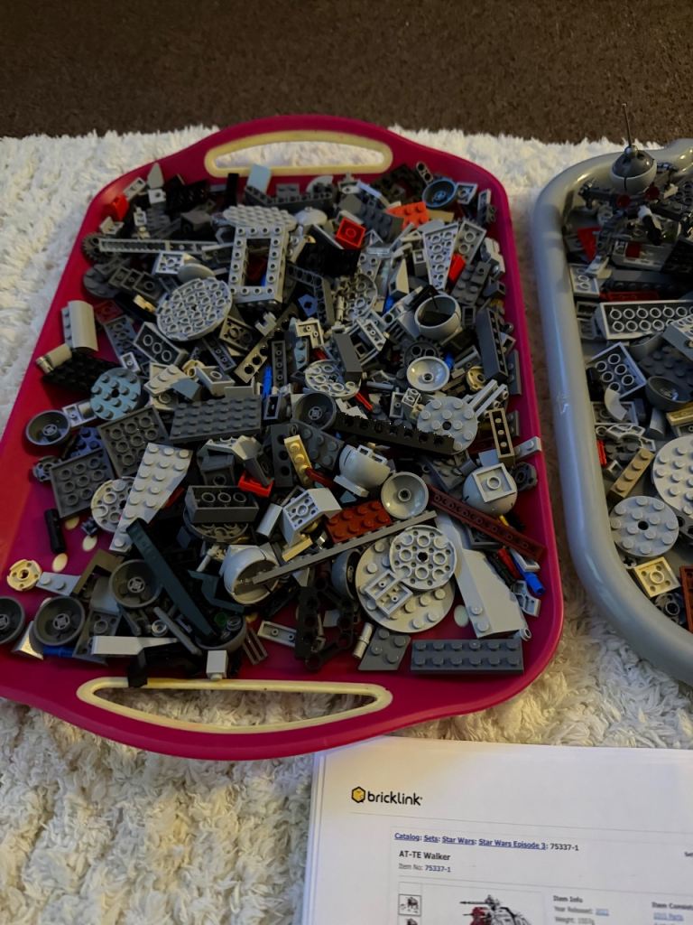 Lego star wars 75337 at te walker. Rounghly 30 pieces missing. There is a list included from bricklink with the missing pieces. Build only no minifigures, box or instructions. Postage available and also listed on ebay/vinted for peace of mind