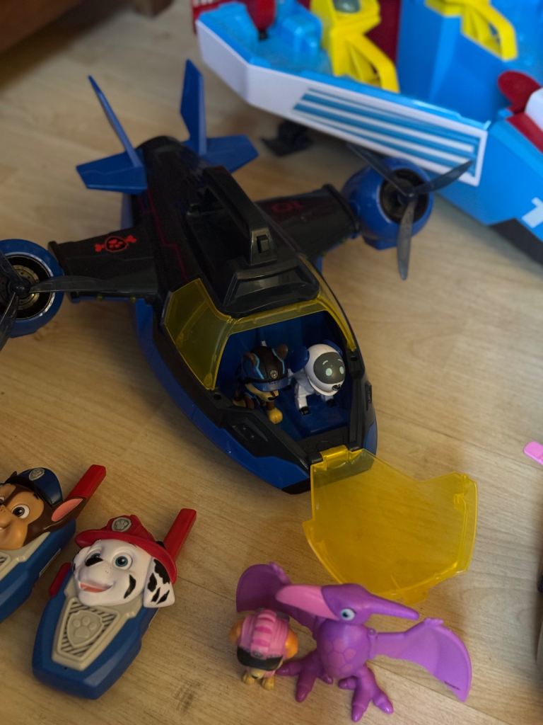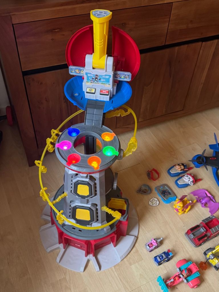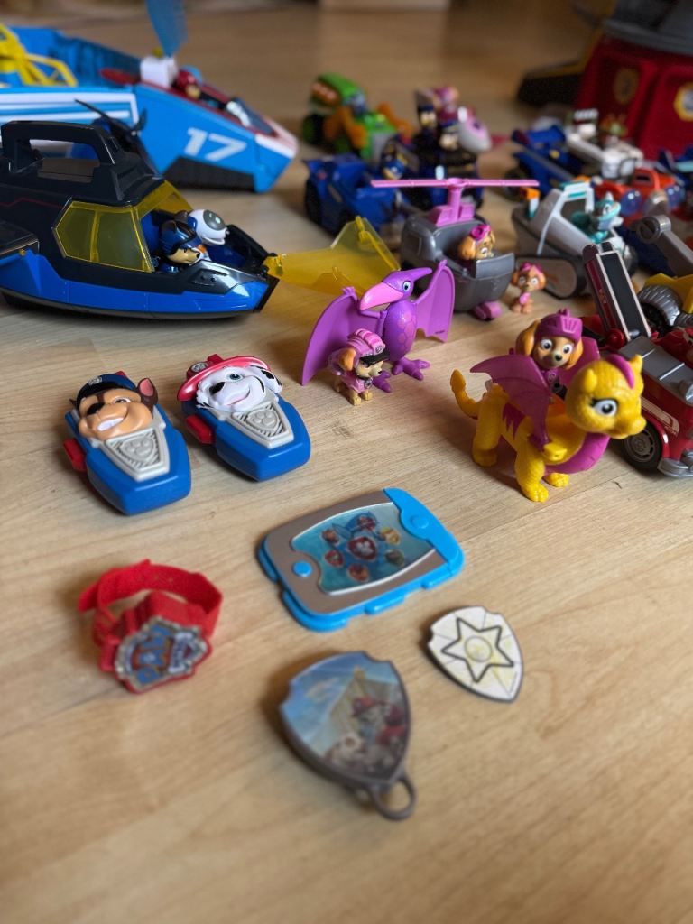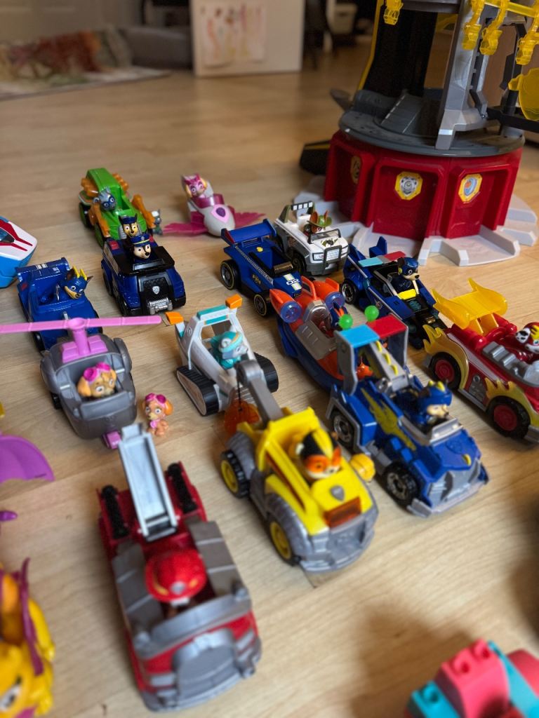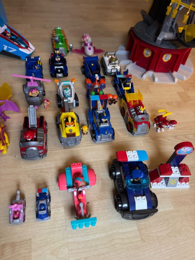 Paw patrol tower with music and lights, collection of cars with characters, two airplanes and few smaller things. All working fine, just my girl overgrew it, but she loved it soooo much. Selling as bundle.