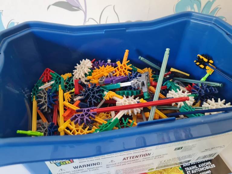 Tub of K'nex, barely used. Includes booklet. Great condition. From pet and smoke free home