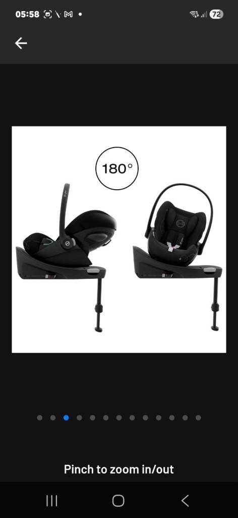 - 90° spin with infant carriers (i-Snug 2)