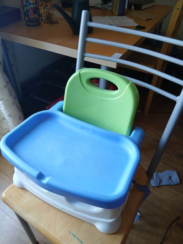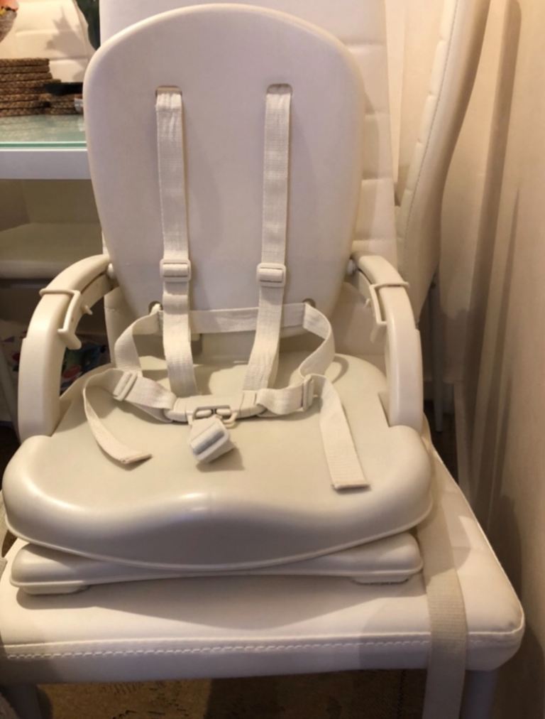I have for sale a Booster Seat in good condition. This seat allows your child to sit with you at the table by securing the booster on a chair and when not in use can be folded.
