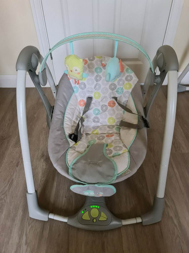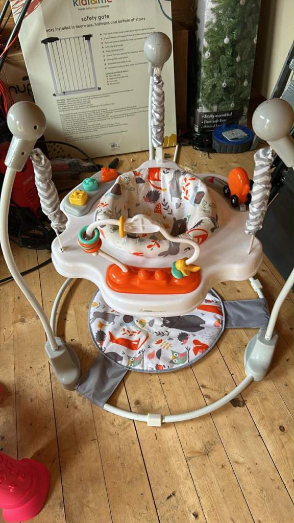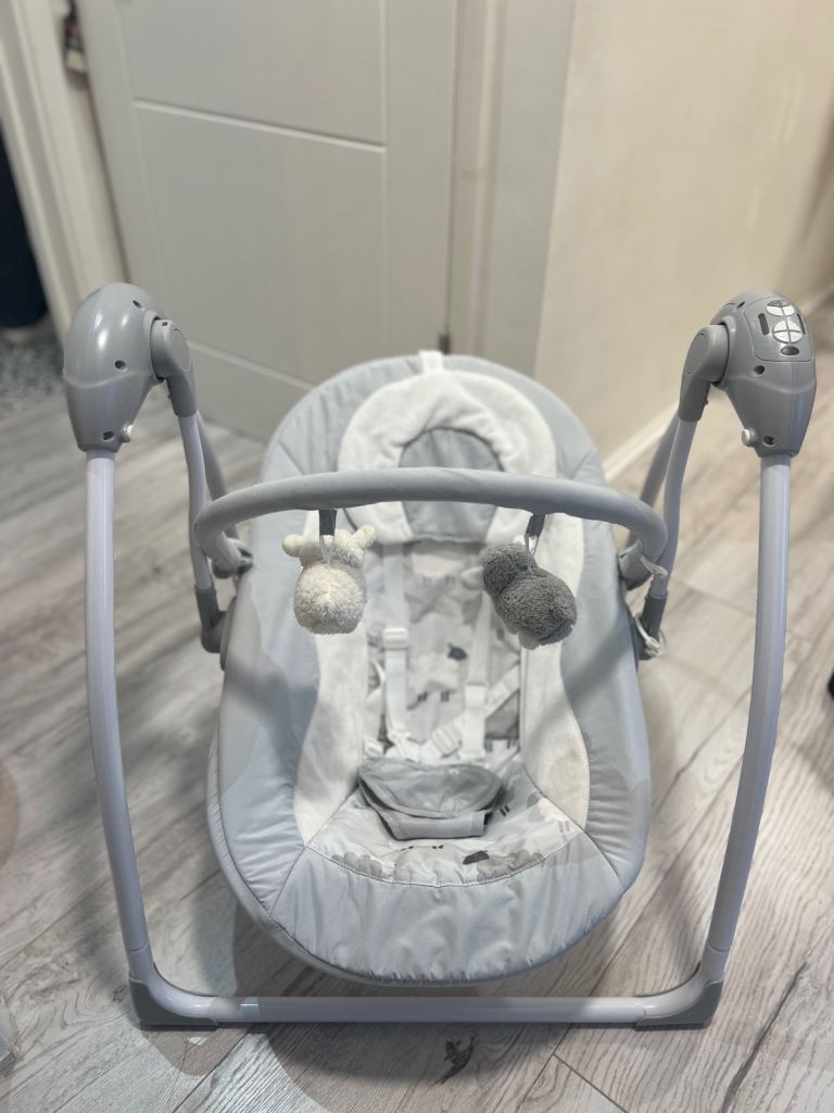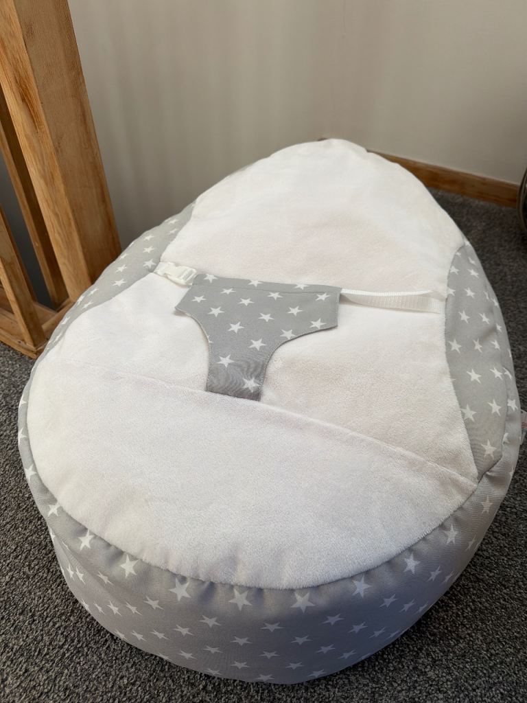 Includes the original wooden toy bar with colourful beads (removable) and machine-washable cotton cover. Three recline positions for play, rest, and sleep.