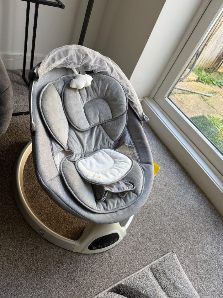 Still looks new but couldn’t get it to rock after a few uses, probably couldn’t get a hold of it. Comes with a remote. Open to reasonable negotiation