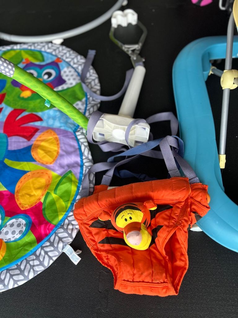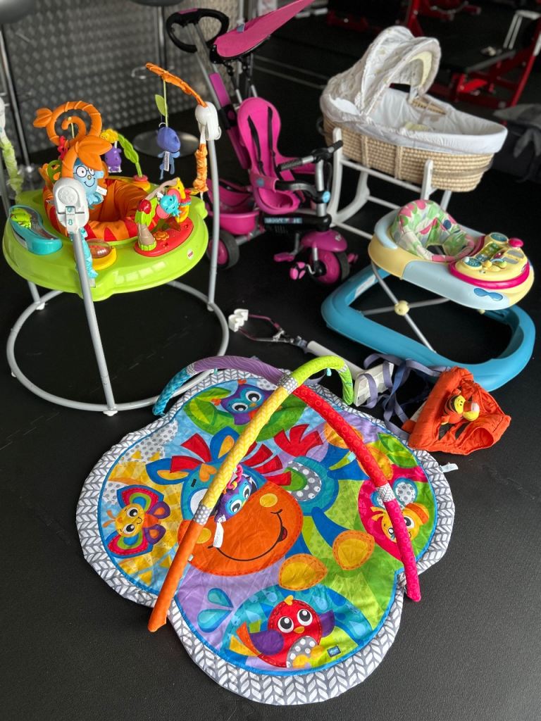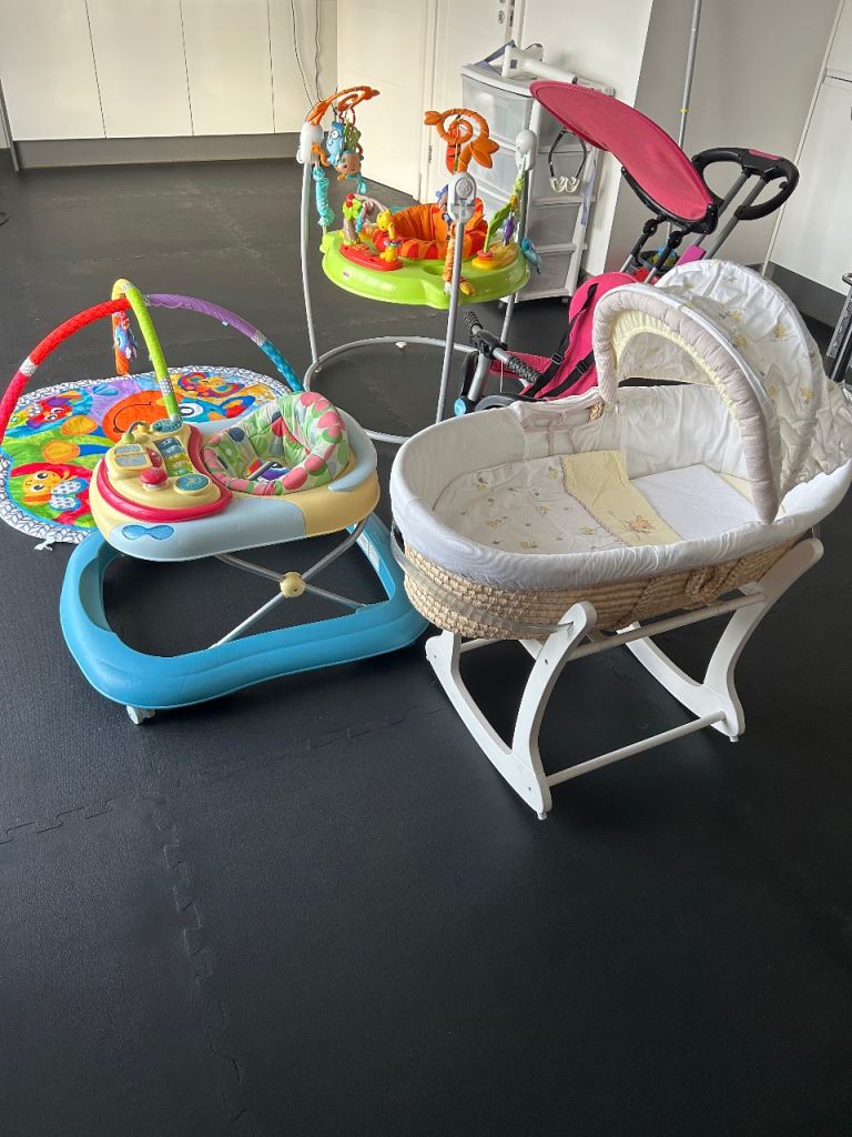Crib very good condition walker very good condition bouncer very good condition trike good condition play mate good condition door frame swing very good condition £300 the lot collection only CM4