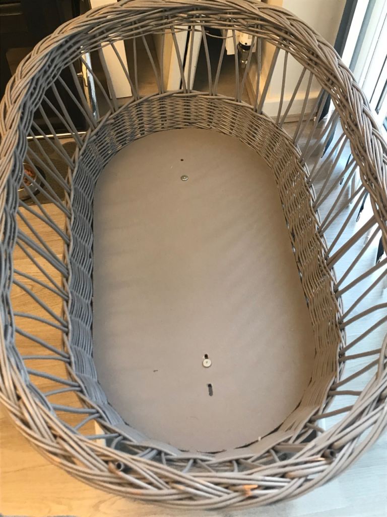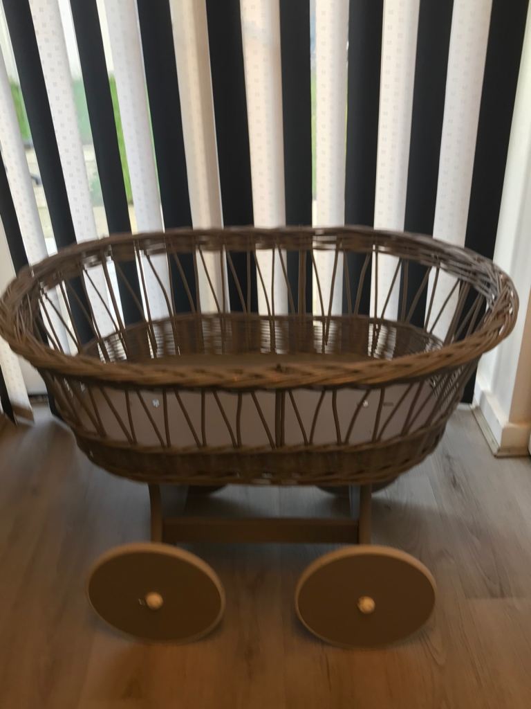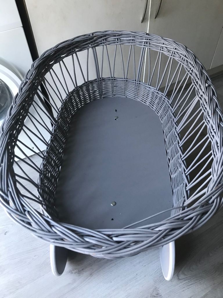 Grey rattan baby crib on wheels very good condition just need a matress
