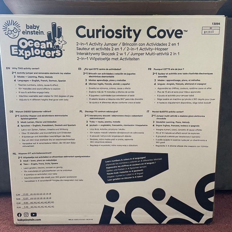 The Baby Einstein Curiosity Cove 2-in-1 Activity Baby Jumper Bouncer is a fun and interactive toy designed for babies aged 6 months and above. With a beach and tropical theme, this bouncing chair provides a variety of activities and music to engage and entertain little ones. Suitable for both boys and girls, the colourful design adds a playful touch to the overall experience. Perfect for keeping your baby entertained and active while allowing them to explore and learn through play.