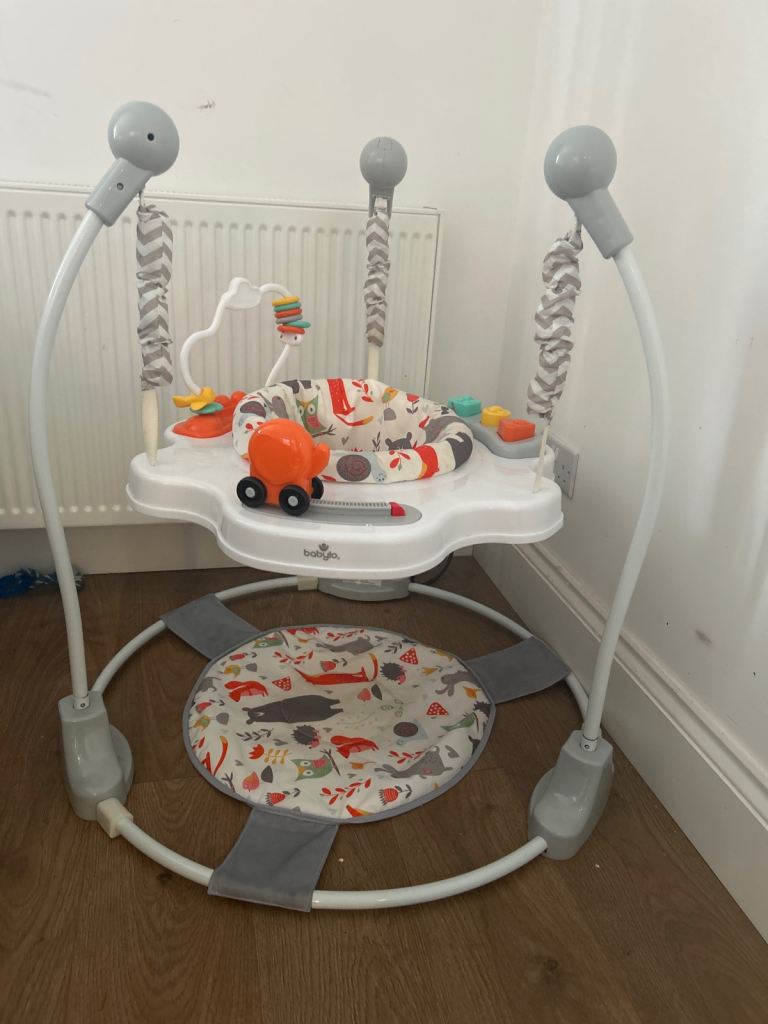Lights and music activate as baby jumps: more jumping, more fun!