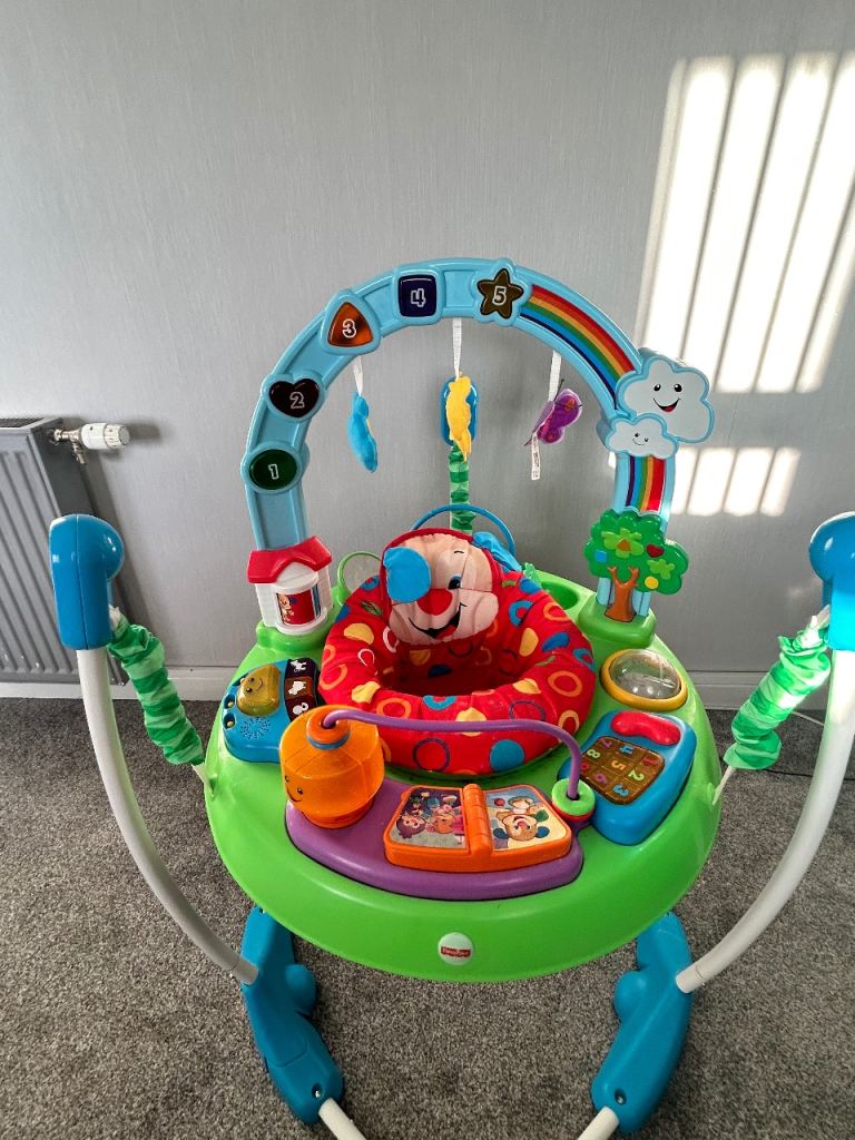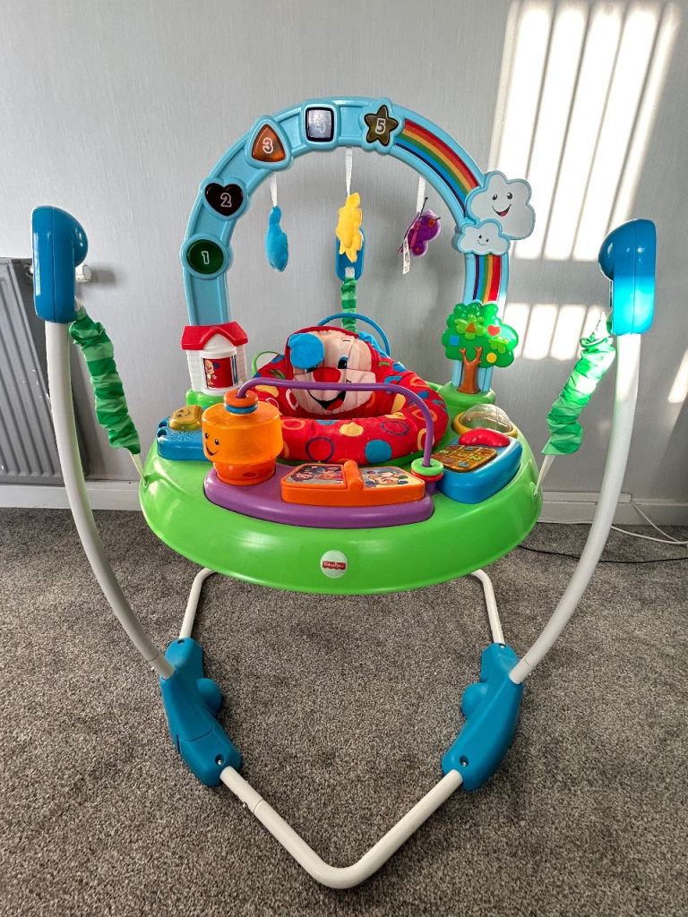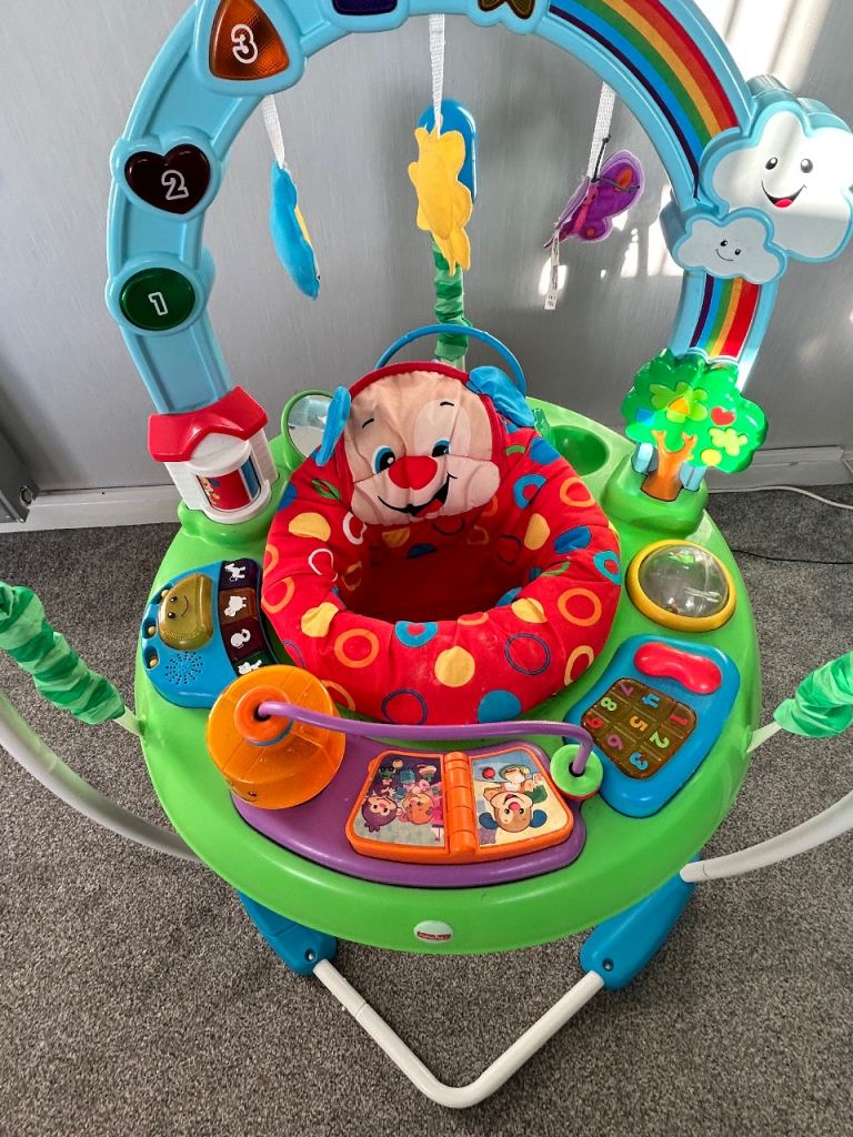 Bright and colourful Fisher-Price baby jumper and activity centre in very good condition.
