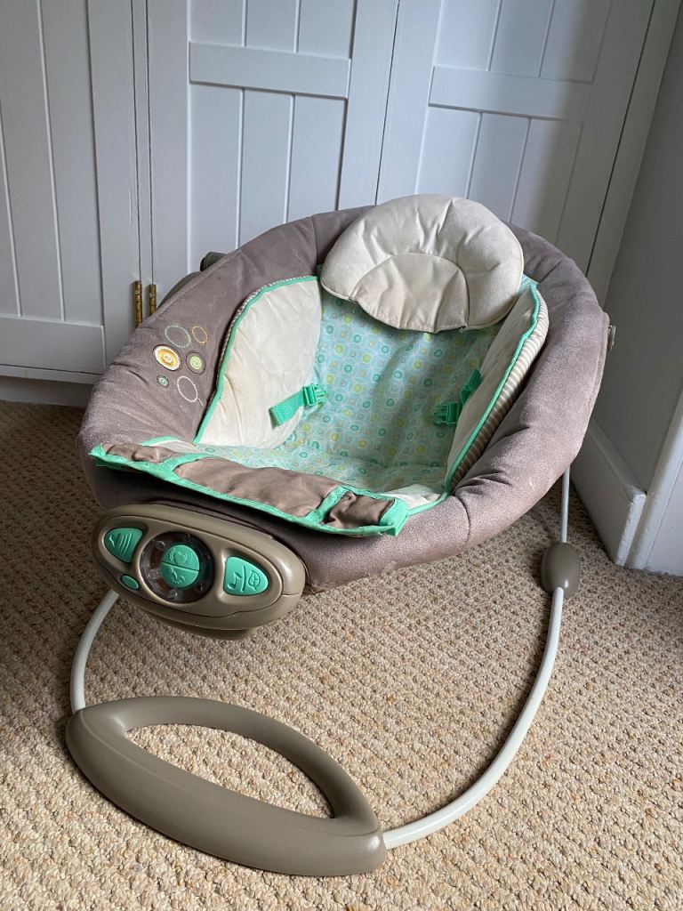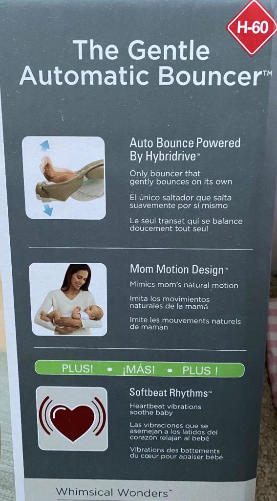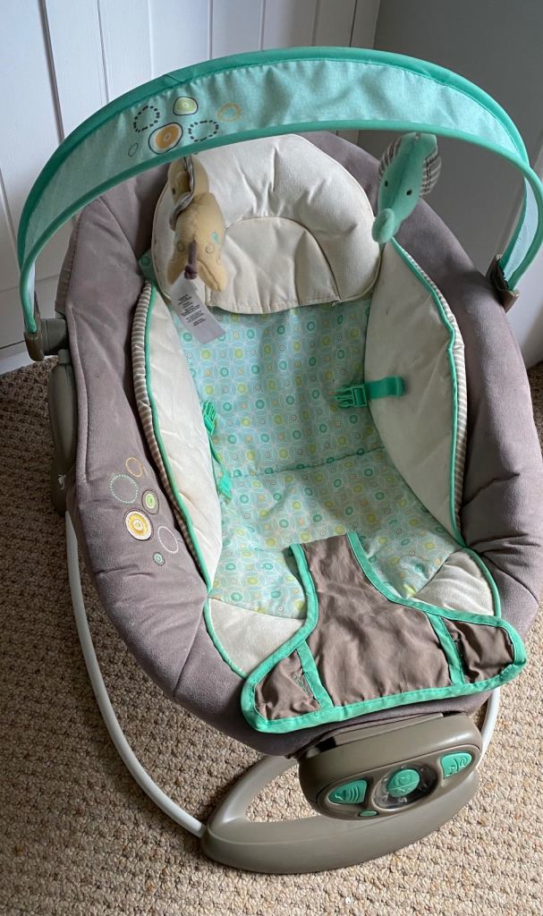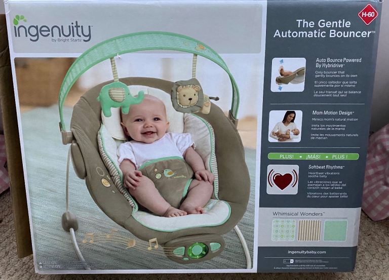 Auto bouncer-bouncer that gentle bounces on its one, mimicking mother’s natural motion. Has heartbeat vibrations as part of softbeat rhythms. Used for one child in a pet and smoke free house-very good condition. Excellent and trusted piece of equipment that I would recommend to any mother or father. Used from birth until my hold could sit up unassisted. Will dismantle and package into original box for postage.