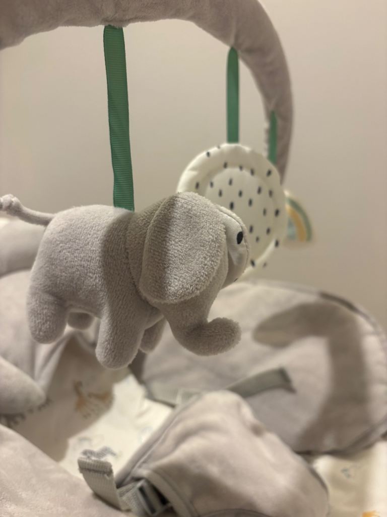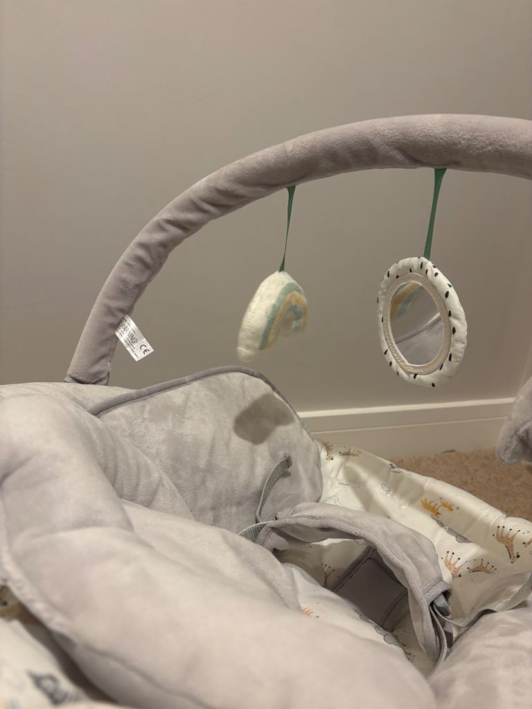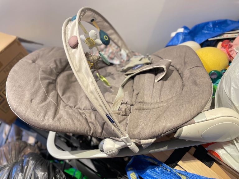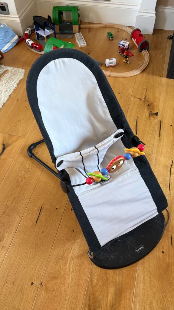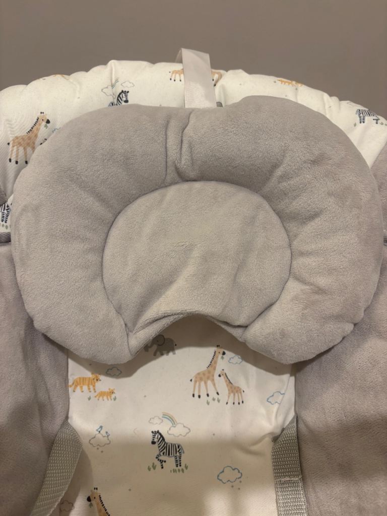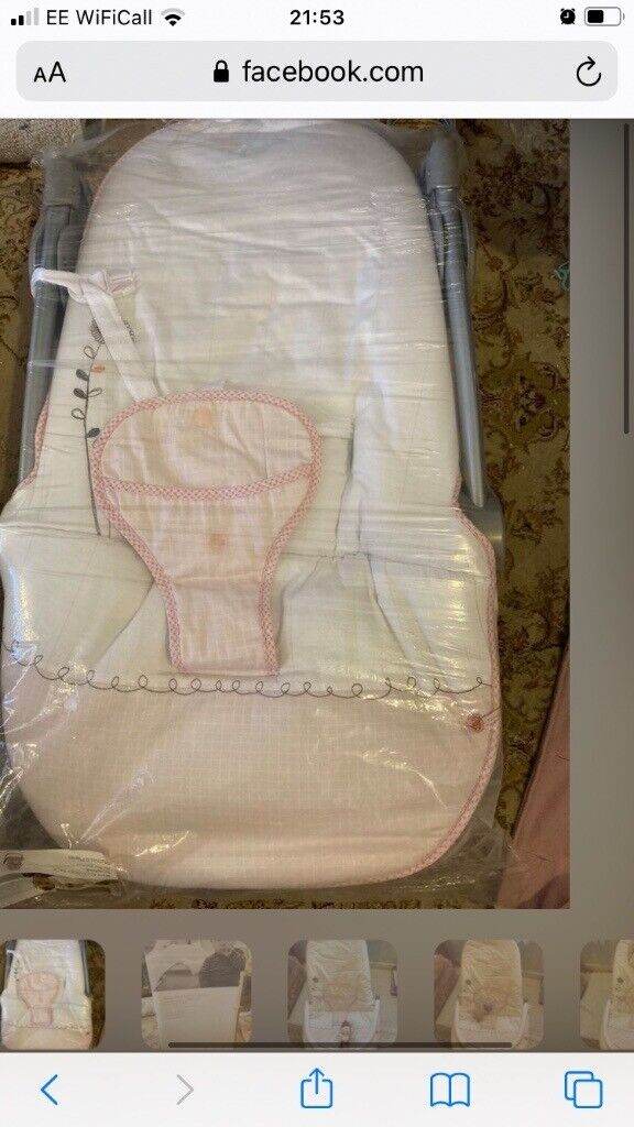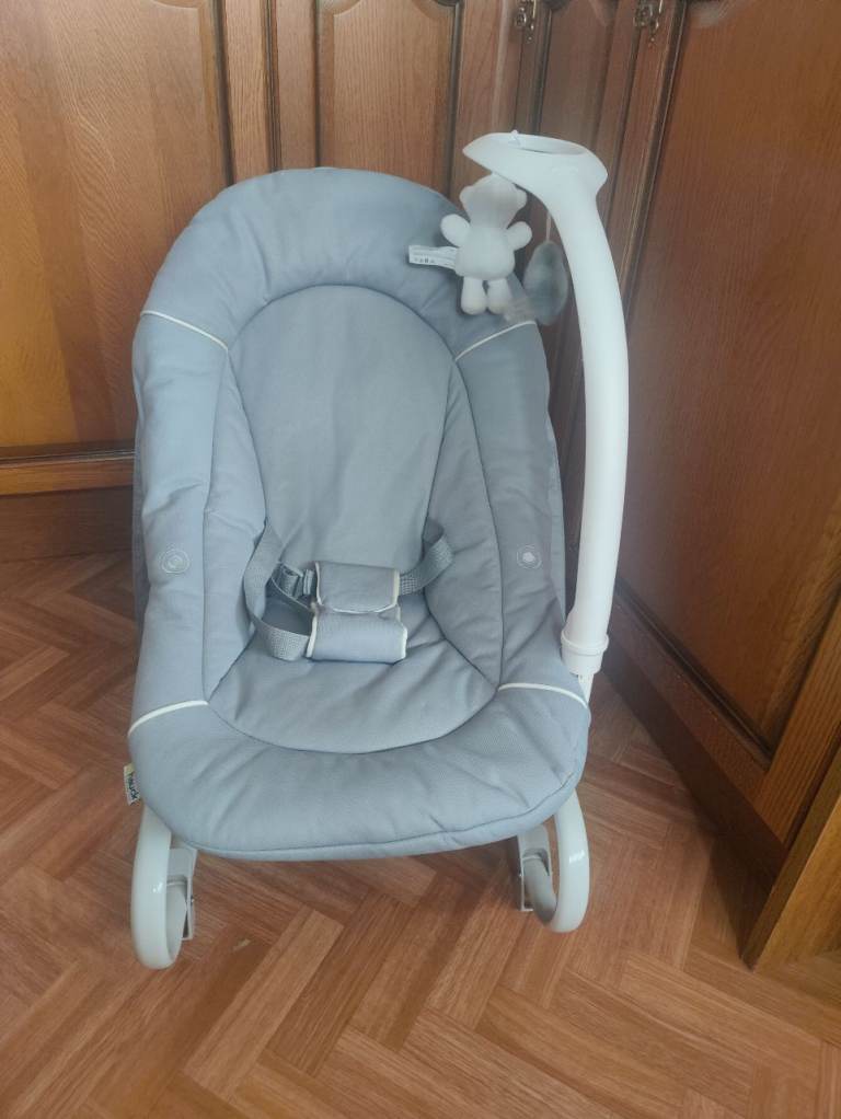 Electric Bay Bouncer from John Lewis featuring 3 vibration settings and continuous soothing music (volume adjustable). Barely used due to OLO not enjoying it. RRP £50. Gender natural colour.