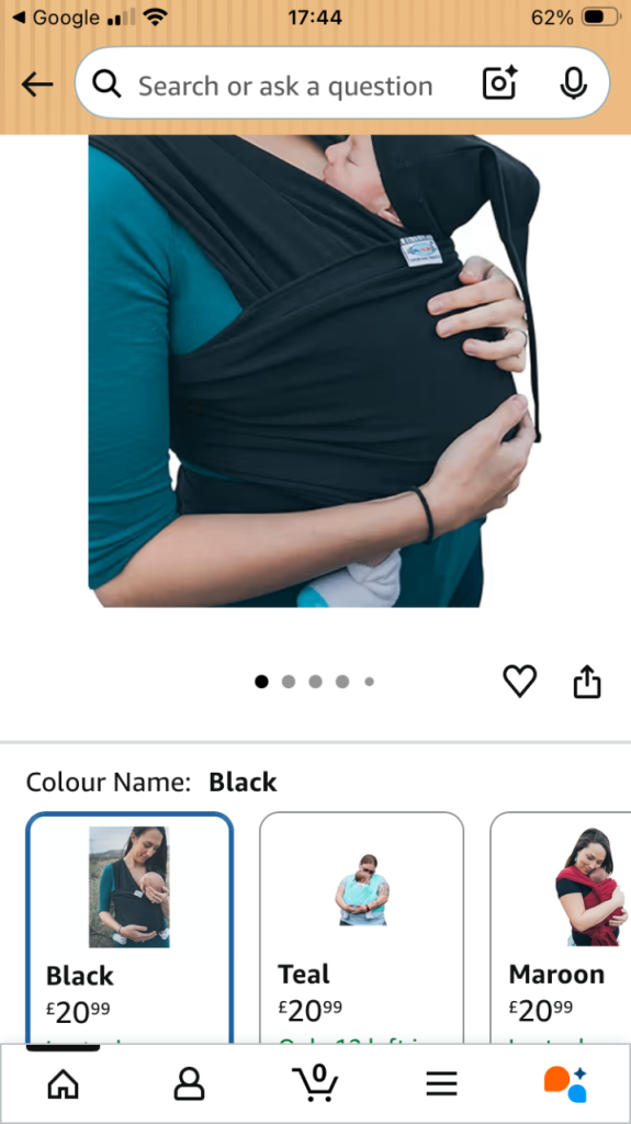 Black baby carrier sling from Joy and Joe, perfect for keeping your little one close.