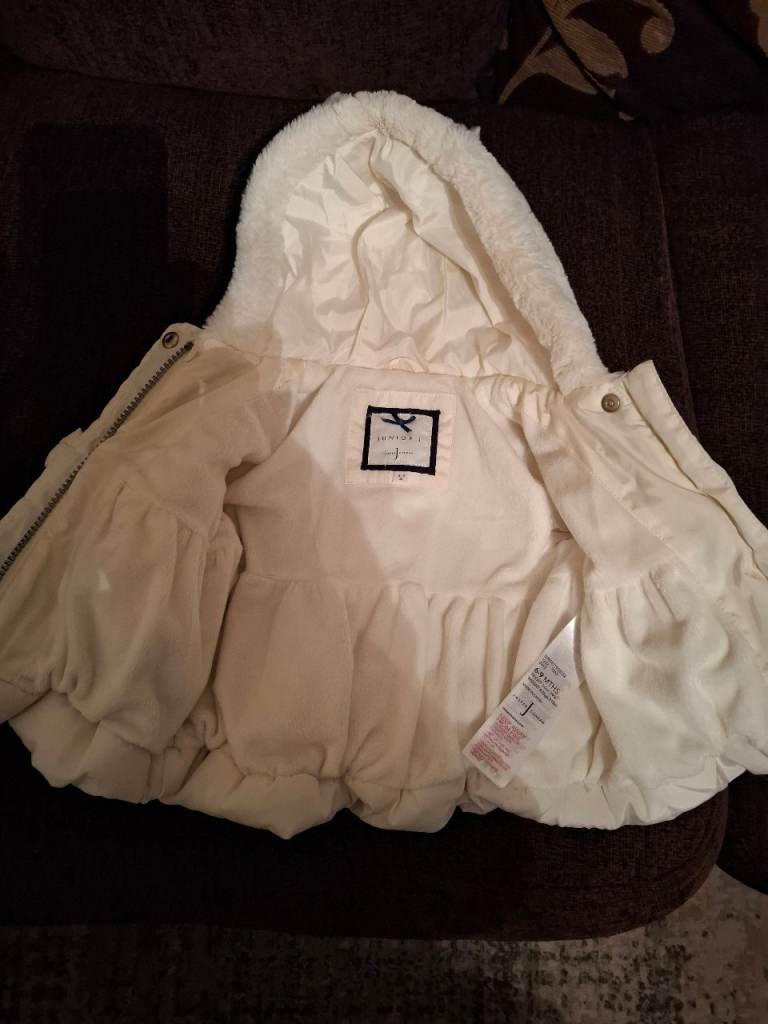 Hi all here we have a jasper conran coat 6-9 MTHS padded with fur hood very warm coat still like new £8 buyer collects thanks for looking