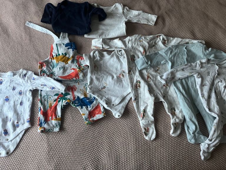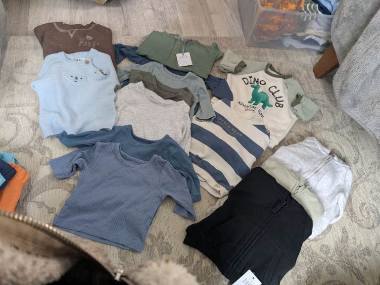 I have full big box of baby boy clothes mixed size from new born to 6 months pm me if you want to see anymore photos contact me on my phone number
