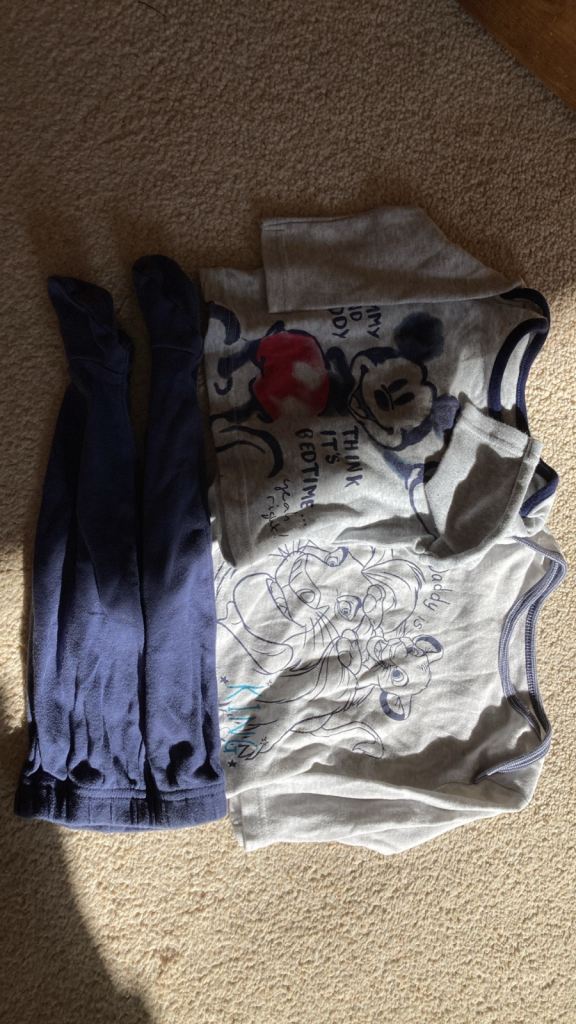 Navy Blue footed pyjama bottoms with 2 pyjama tops (Lion King and Mickey)