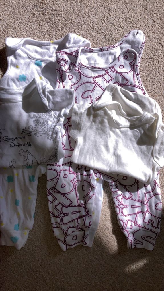 Hardly worn as they don’t stay that size for long at all. Most are completely unworn, apart from the sleepsuits