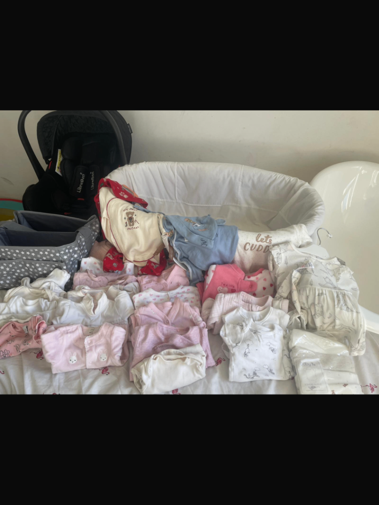 I have a bundle of used baby items for sale. Included is a Moses basket (no mattress but does have a stand), car seat, clothes, baby bath and small nappy caddy. Collection only. Tonbridge