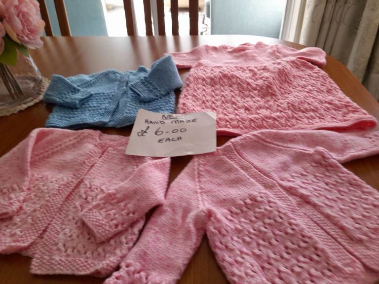Baby cardigan for sale, all hand made ,blue and pink, buyer collects. £5 each.