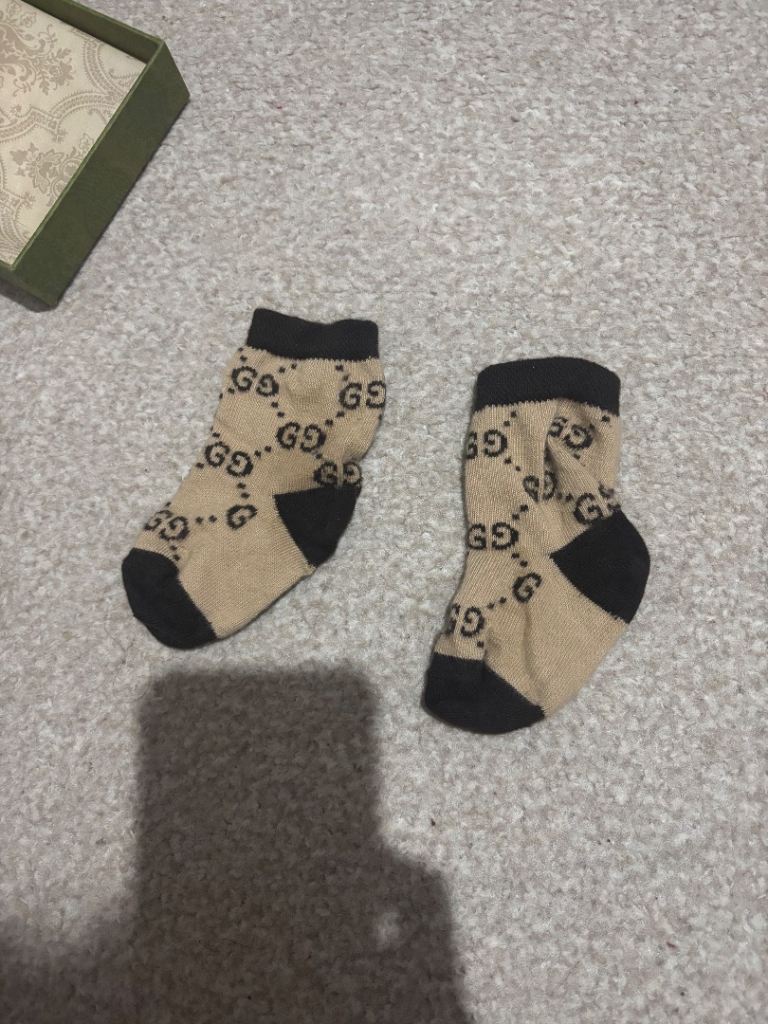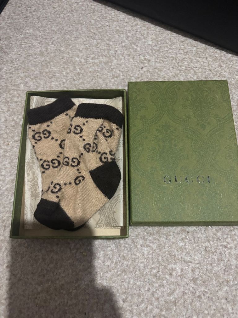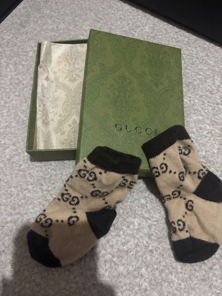 Baby Gucci GG socks size m fits 6-12 months but will fit sooner and after, only been worn once for pictures paid £55 selling for £20 come with receipt