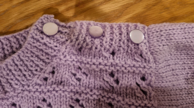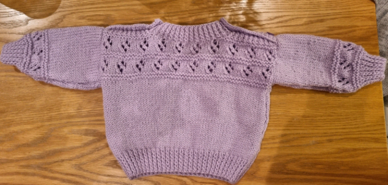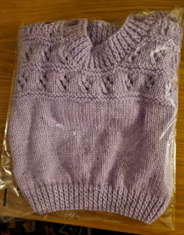 Beautiful handmade Lilac Jumper with pearlised buttons on the shoulder. To fit 6-12 months old.