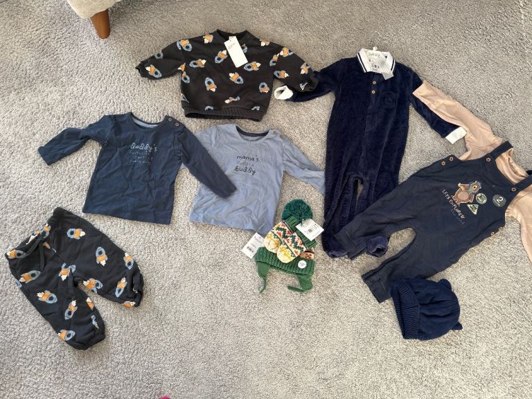 Over 100 Items include babygrows, sleepsuits, vests, tops, leggings, dresses, jumpers, cardigans, coats, hats and seasonal pieces across all age ranges.
