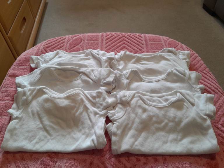 6 F&F White Baby Vests Up To 1 Month Good Condition