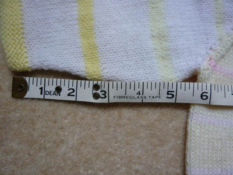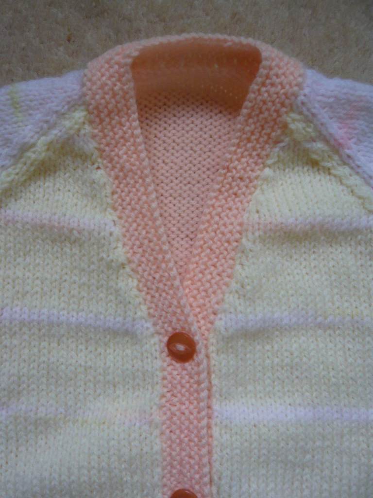 Front and sleeves in bands of white, shades of lemon and variegated yarn