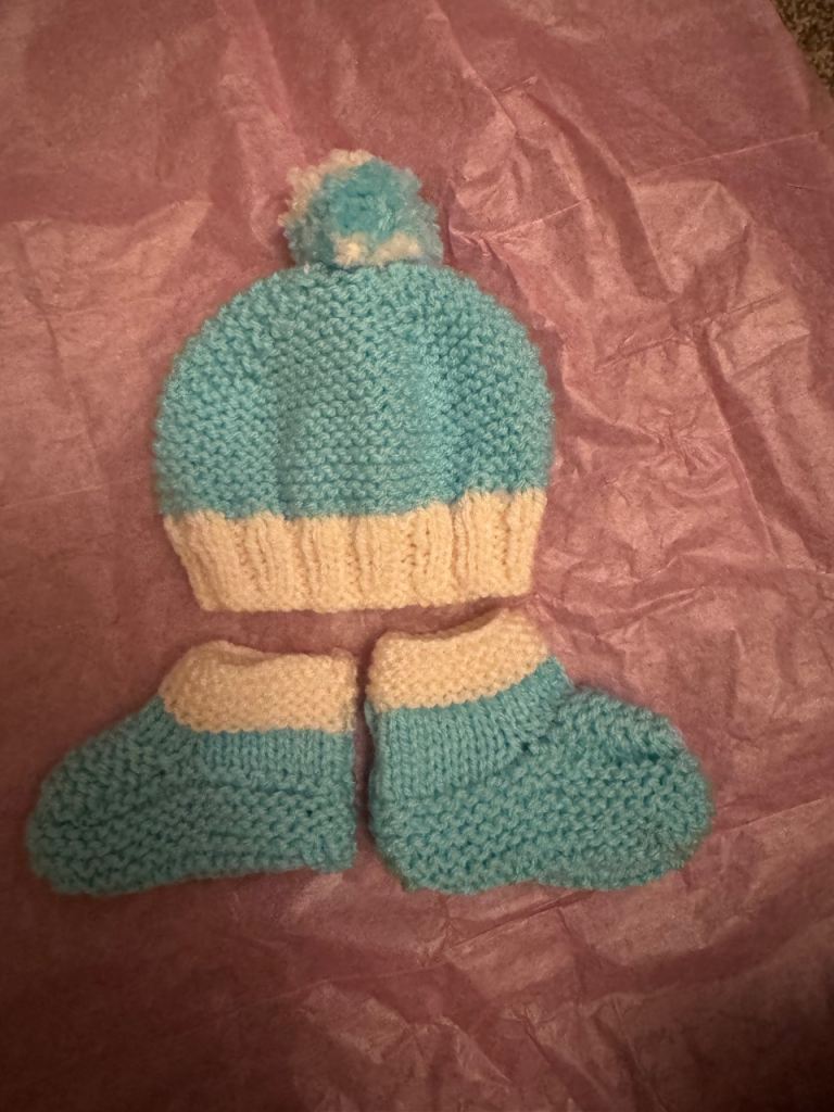 For only £7.50 I will knit, with love, a bonnet and booties set. All money made will go back into buying more wool to create more beauties.