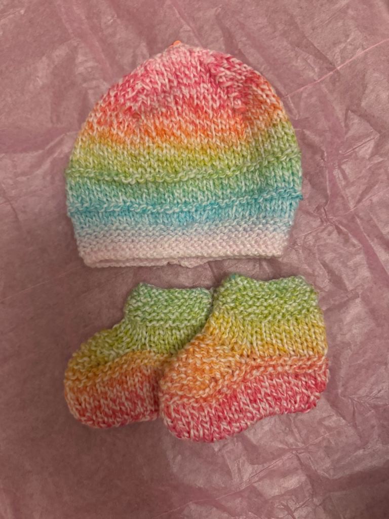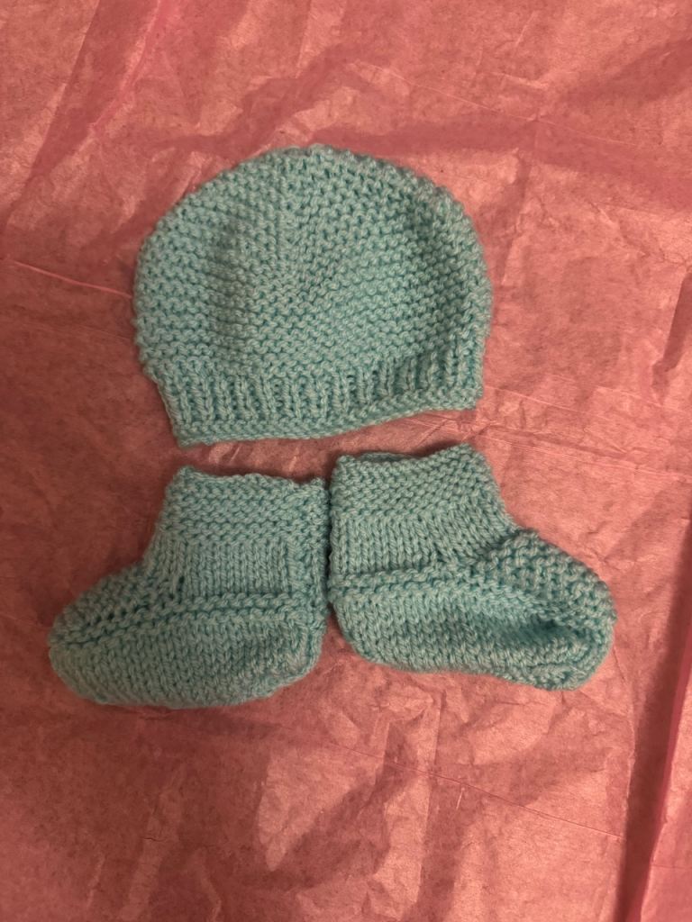 Hand knitted Baby bonnets and booties