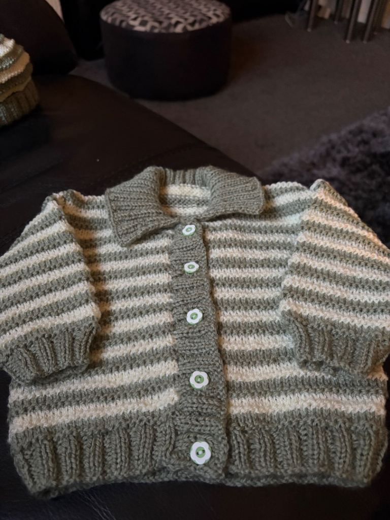 Hand knitted baby jacket/cardigan and hat size 3-6 months