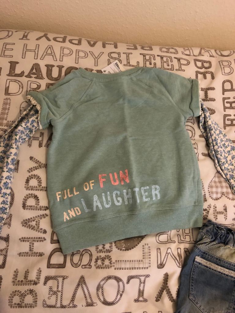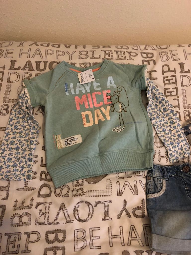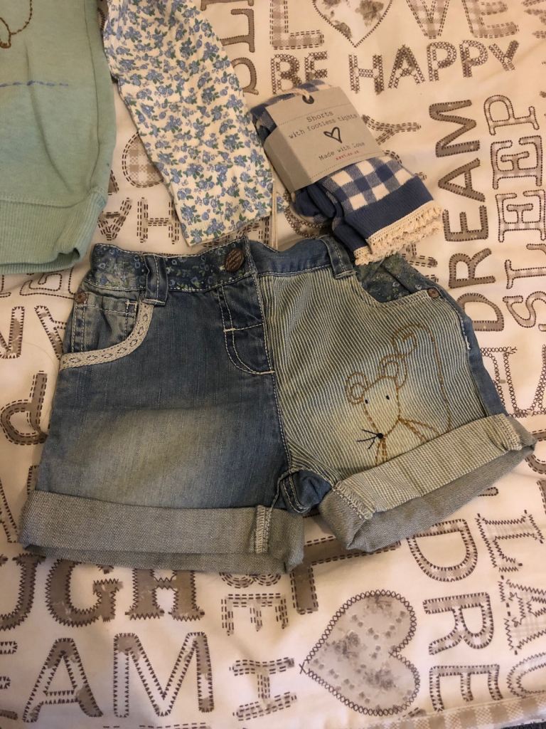 Posting for 6+ yearsNext Girls 4-5 Years Denim Shorts Footless Tights Top Set Very Rare Mouse Range BNWT