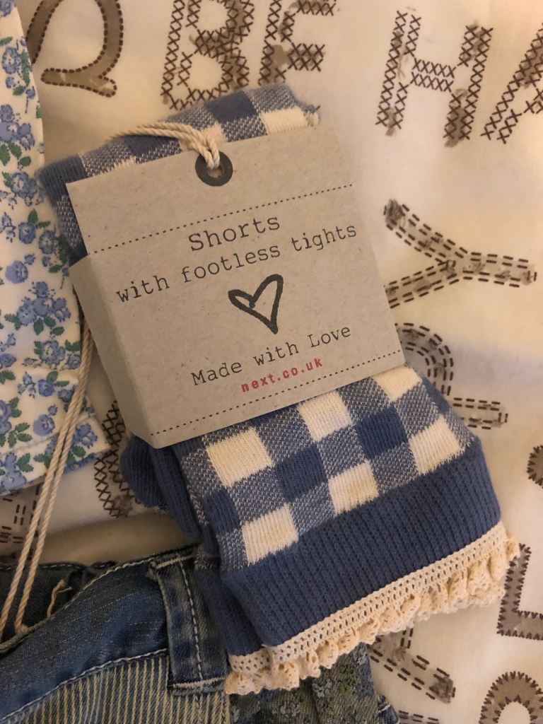This rare set from NEXT is perfect for your little girl's summer / winter wardrobe. The denim shorts and footless tights make a great combination for a casual outfit. The set includes tights and shorts, both made from high-quality denim and fabric.