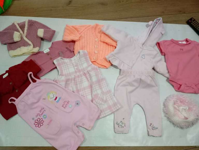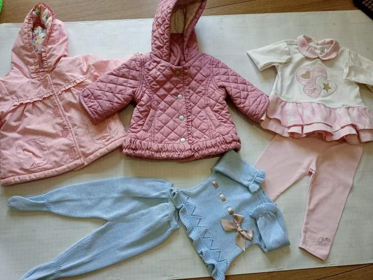 A SELECTION OF BABY GIRLS CLOTHES ALL IN GREAT CONDITION AND ALL AGED 0-3 AND 3-6 MONTHS INCLUDES SOME DESIGNER. COLLECTION DENNISTOUN-FORGE OR TOWN ASKING FOR £45 O.V.N.O THE LITTLE PINK SET IN THE PIC WITH THE JACKETS IN IT IS BY A-DEE AND COST NEARLY THE PRICE I AM ASKING FOR THE LOT