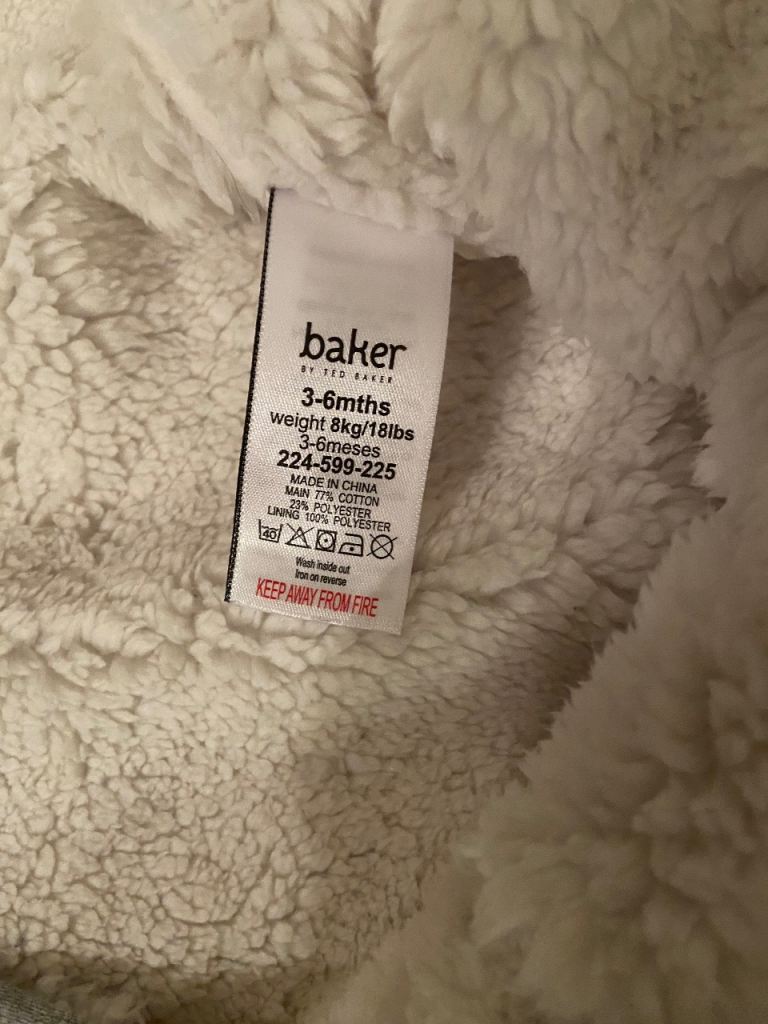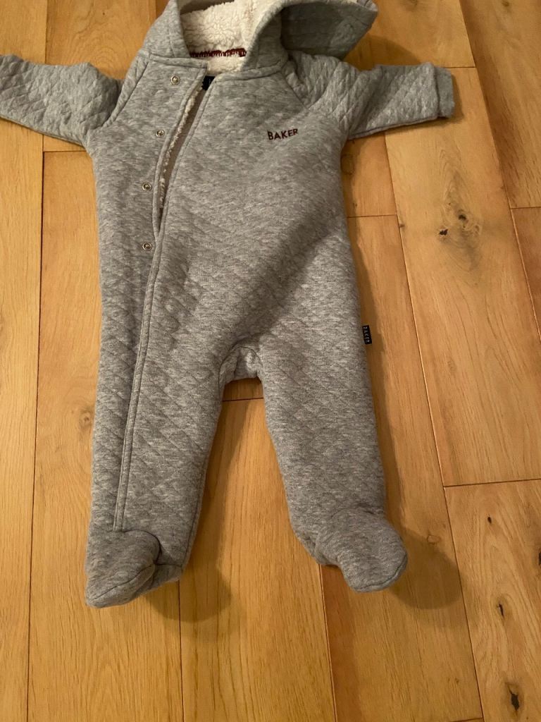 Grey Ted Baker baby suit with cream lining. Age 3-6 months. Excellent condition
