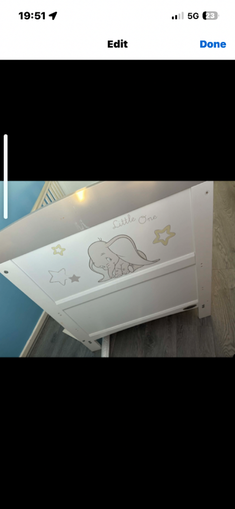 3-on-1 baby cot, toddler bed, kiddie bed with storage.