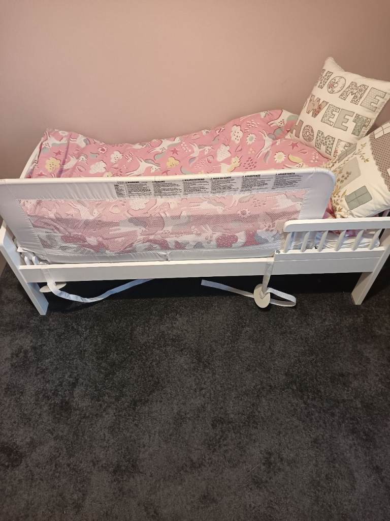 Lovely white wooden toddler bed, perfect for transitioning from a cot.