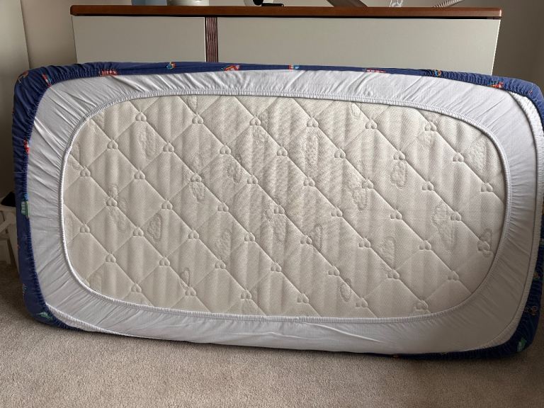 High quality mattress available. No stains. It has the baby safe firmer breathing side, and once baby is one year old, turn it over to toddler side, which is slightly softer and still safe breathing. Mattress has only ever been used with protectors on. Mattress protectors included if you would like.