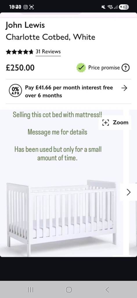 Posting for under a monthJohn lewis charlotte cot bed