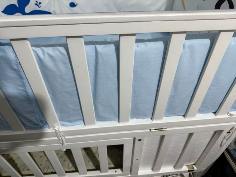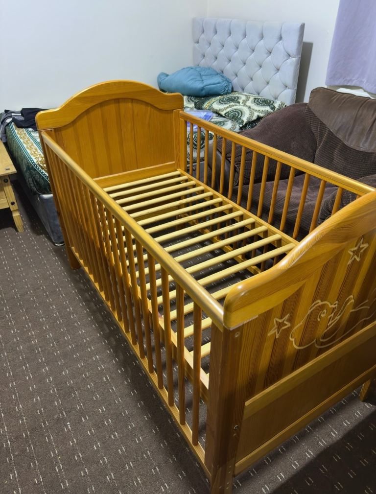 John Lewis Lasko Cotbed - used. Collection in person only. - Pictures show, in bed mode - all pieces required to convert to Cot sold with this - selling with mattress - Looking for £75 including mattress -l