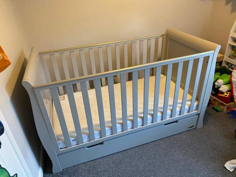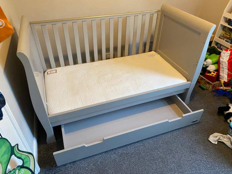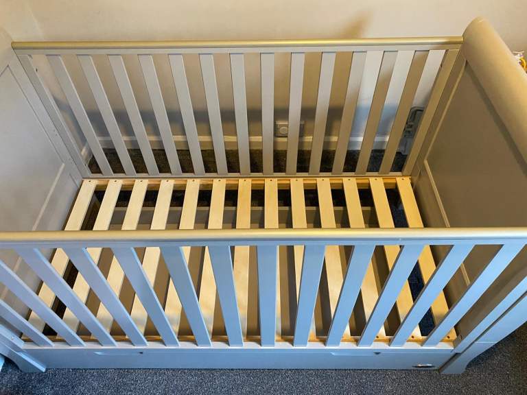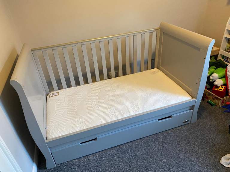 Invest in this bed and cater to your little one's sleep until they are around 4 years old. An under drawer allows you to have some extra storage for your baby essentials. As your baby grows, you can lower the mattress base to accommodate their changes. When they are old enough, you can remove the sides to transform the cot into a toddler bed. The sleigh design coordinates beautifully.