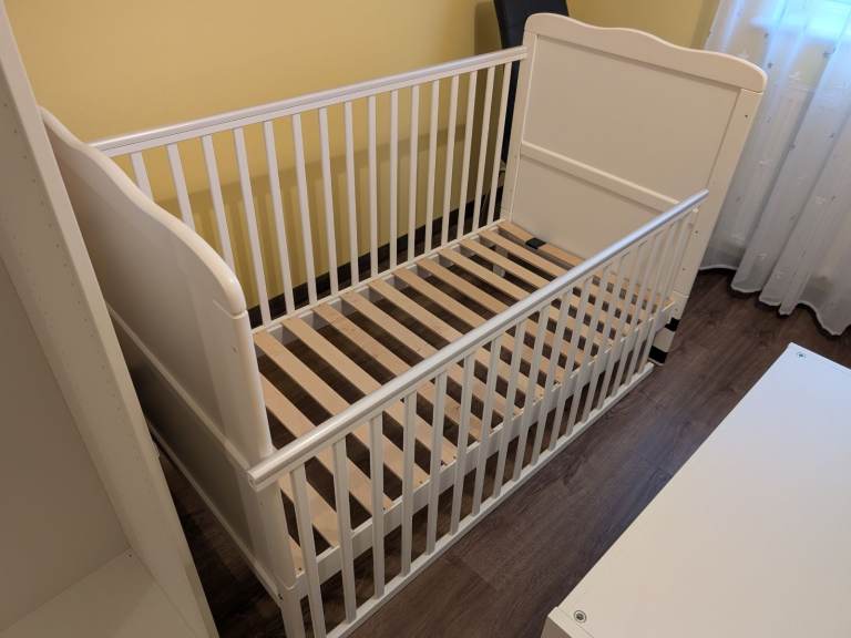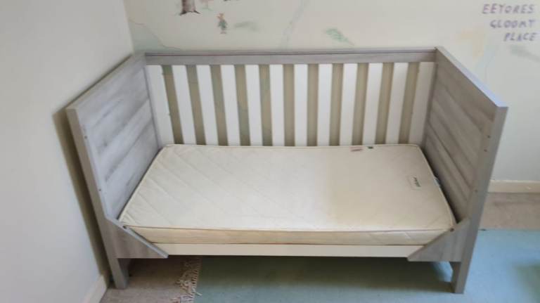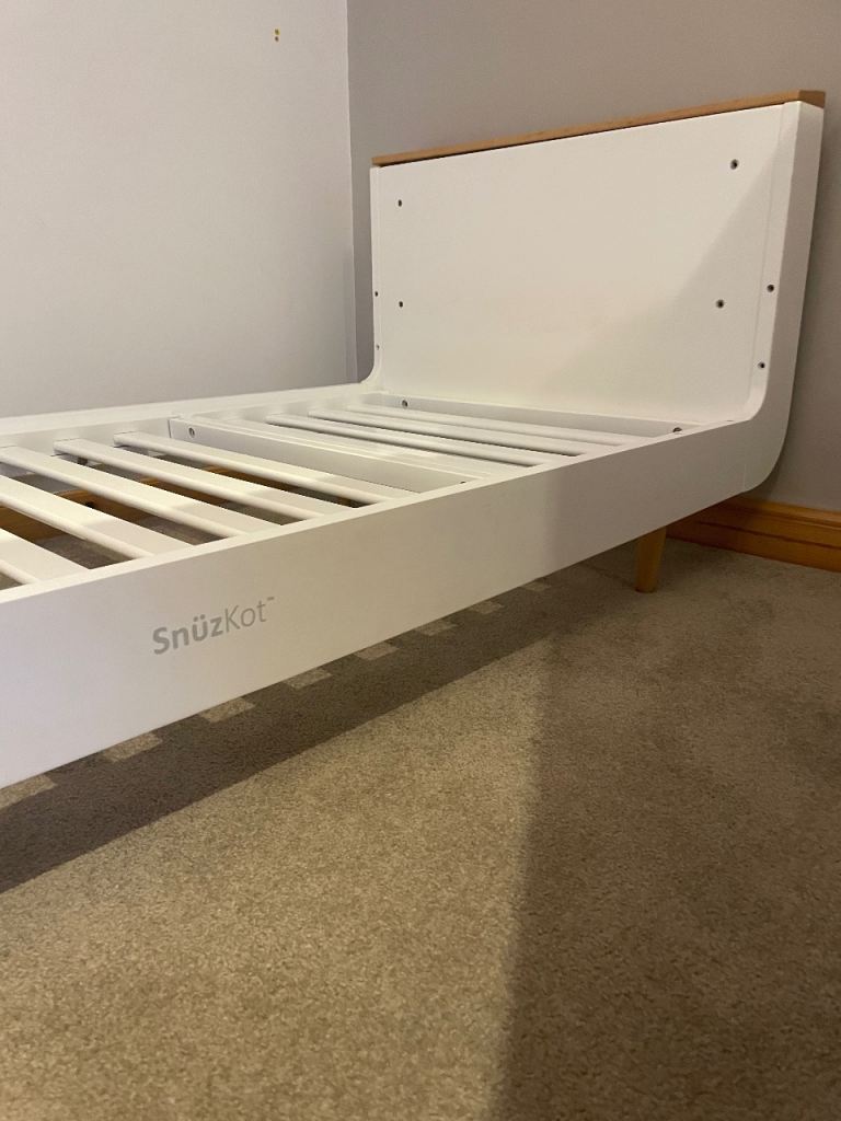 Lovely SnuzKot cot bed, can be used from birth up to around 4 years old. Has all the extension pieces for a junior bed up until 10 years old.