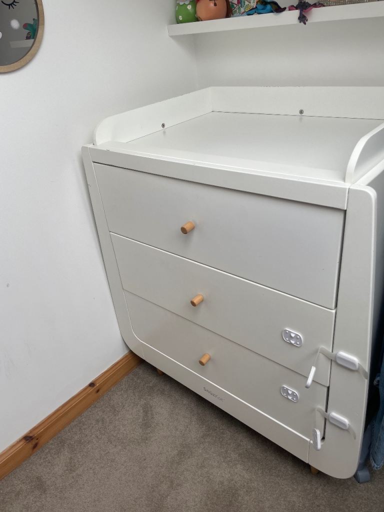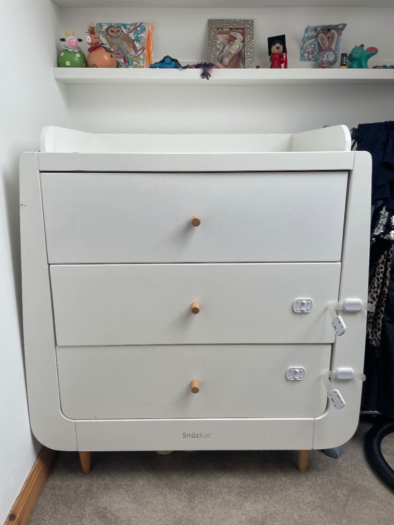 Also selling the matching SnuzKot changing unit to match with three spacious drawers. Retail cost £845 new. Looking for £100 or best offer.