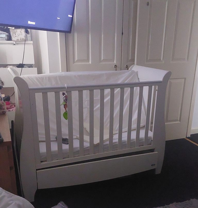 SnuzKot Cot Bed and Changing Unit – White, Good Condition