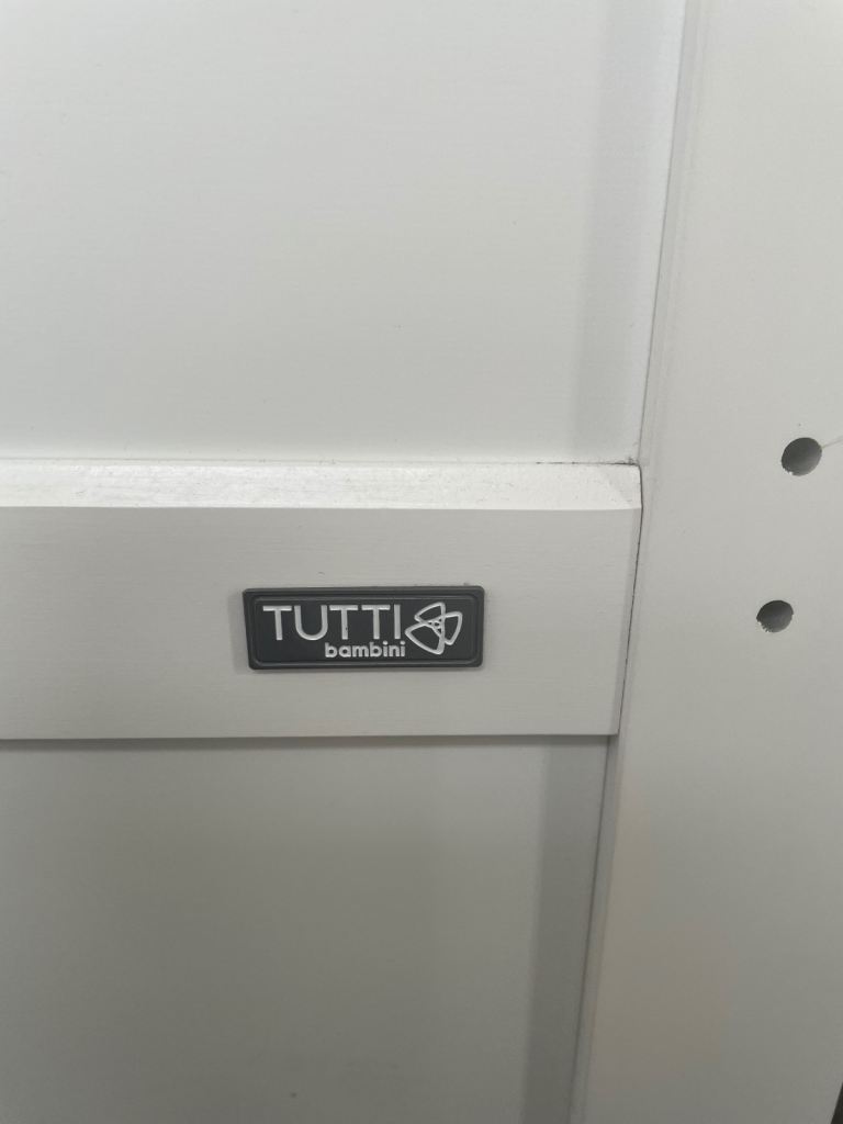 Tutti Bambini cot bed, changing table, mattress, mattress protector and two fitted sheets for sale.
