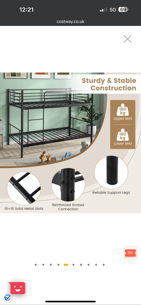 Sturdy and Stable Construction: Supported by 16+16 solid metal slats, the twin over twin bunk bed provides exceptional sturdiness to support long-lasting use, which can bear up to 440 lbs/180 kg respectively. Reinforced screws connection and reliable support legs also enhance stability.