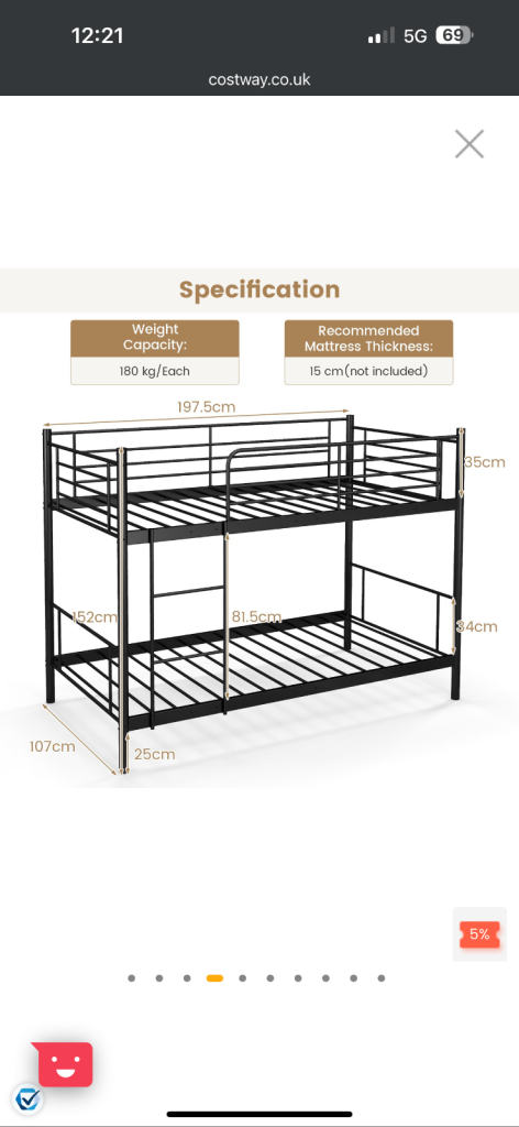Recommended Mattress Thickness: 5-15 cm(not included)